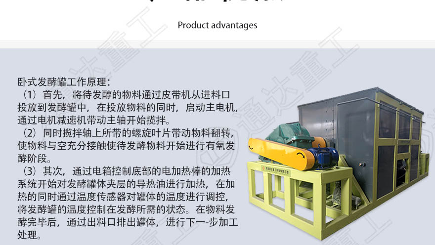 • 該發(fā)酵設(shè)備主要用于處理豬糞、雞糞、牛糞、羊糞、菌菇渣、中藥渣、作物秸稈等有機廢棄物,10個小時可完成無害化處理過程,具有占地面積小,無空氣污染(密閉式發(fā)酵),徹底殺滅病蟲卵(可調(diào)整60-100℃恒溫)抗腐蝕性能高,等諸多優(yōu)勢,是廣大養(yǎng)殖企業(yè)、循環(huán)農(nóng)業(yè)、生態(tài)農(nóng)業(yè)實現(xiàn)廢棄物資源化利用的最佳選擇。另可根據(jù)客戶需求定做5-50m3不同容量。 該設(shè)備內(nèi)部導(dǎo)熱油采用進口優(yōu)質(zhì)高溫導(dǎo)熱油作為恒溫?zé)嶂祩鬟f介質(zhì),具有沸點高導(dǎo)熱性能穩(wěn)定熱交換效率高,傳熱效果好熱能利用率高等明顯優(yōu)勢。 臥式發(fā)酵罐適用范圍:應(yīng)用于有機肥、農(nóng)藥、獸藥、食品、化學(xué)品、生物肥、養(yǎng)殖業(yè)發(fā)酵飼料的混合發(fā)酵等還特別適用相對粘稠的物料混合恒溫發(fā)酵。